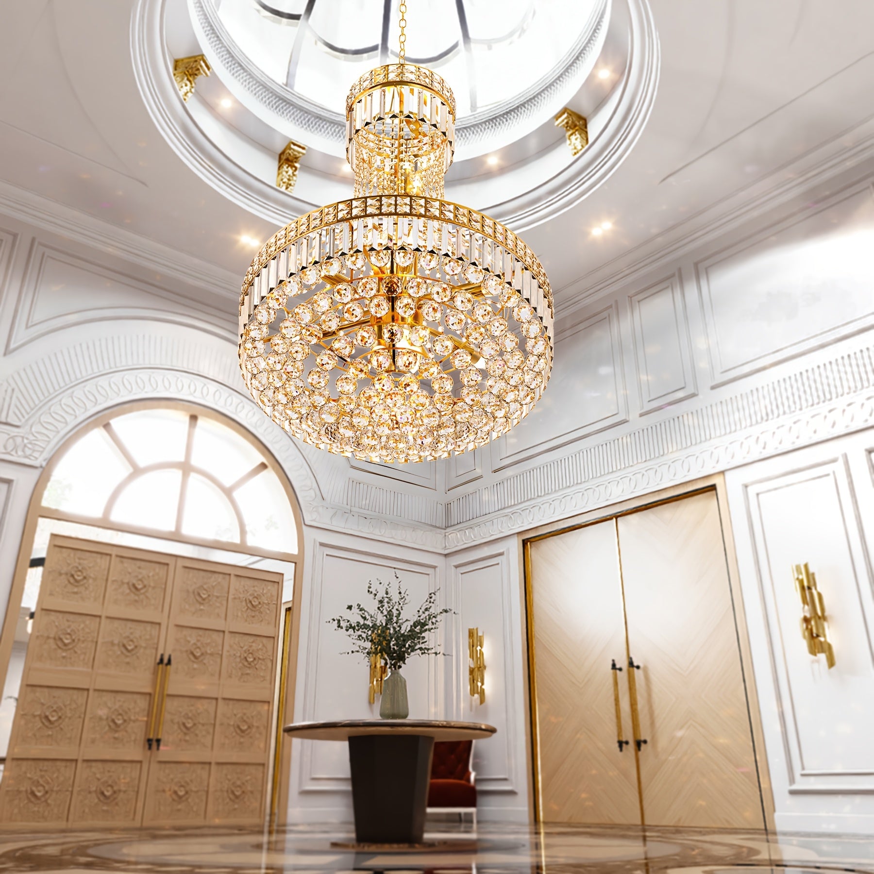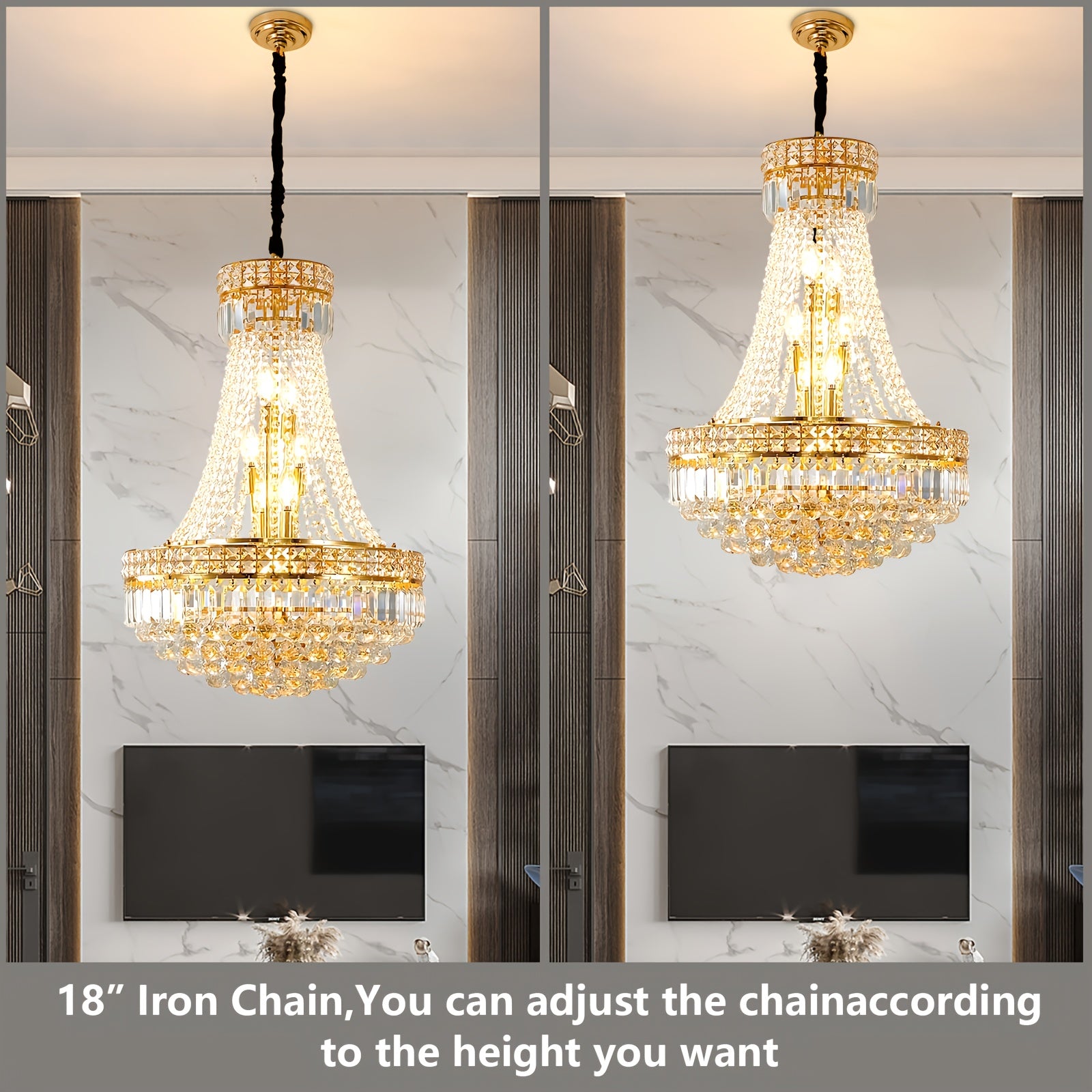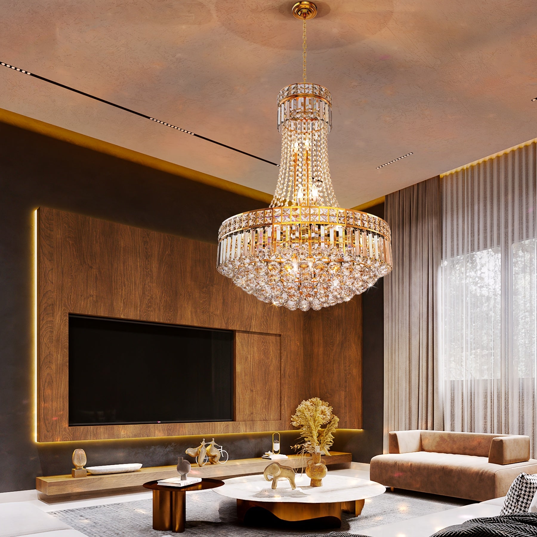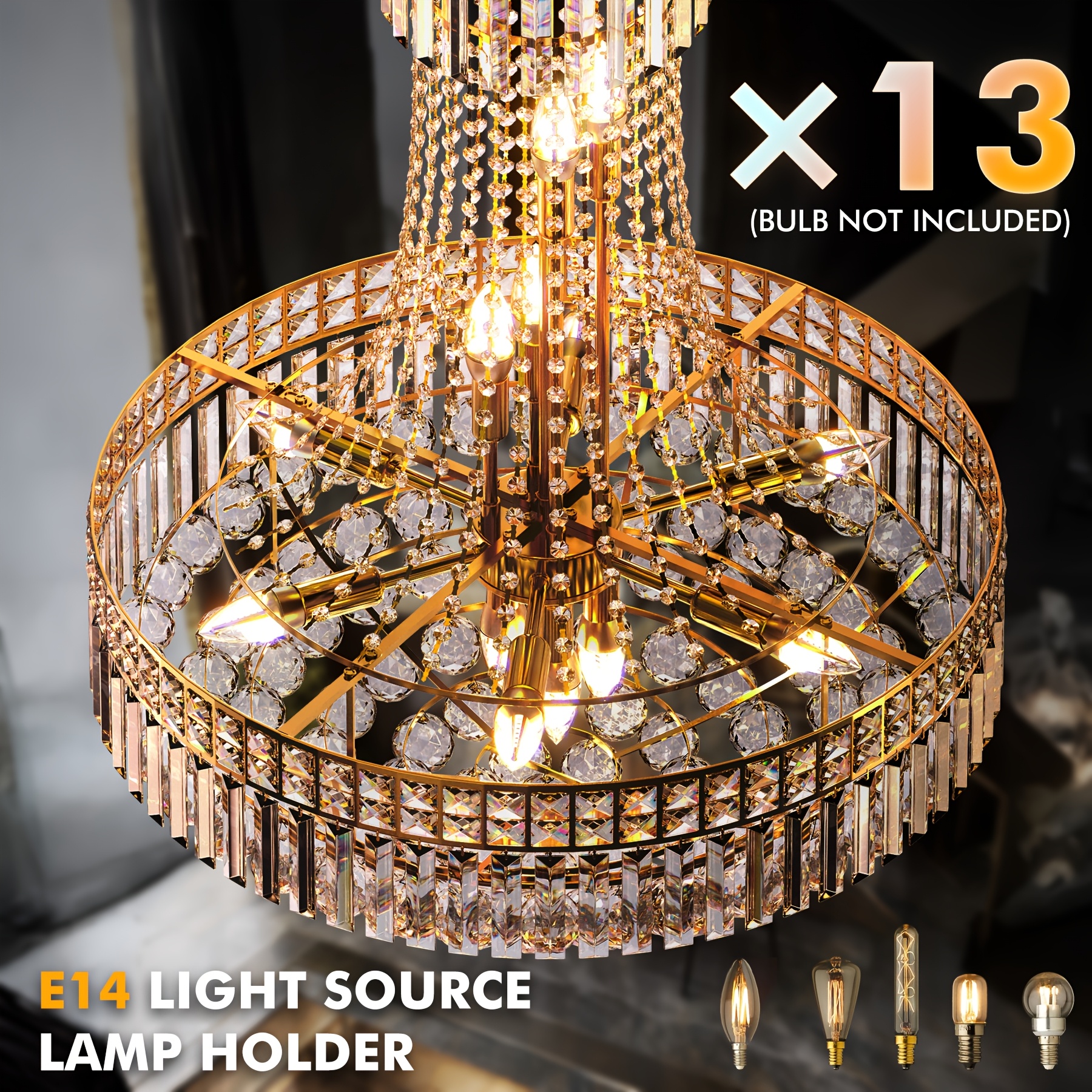 Modern Crystal Chandelier Golden Empire Chandelier 13-Light Christmas K9 Crystal Ceiling Chandelier Light Fixture For Living Room Dining Room Foyer