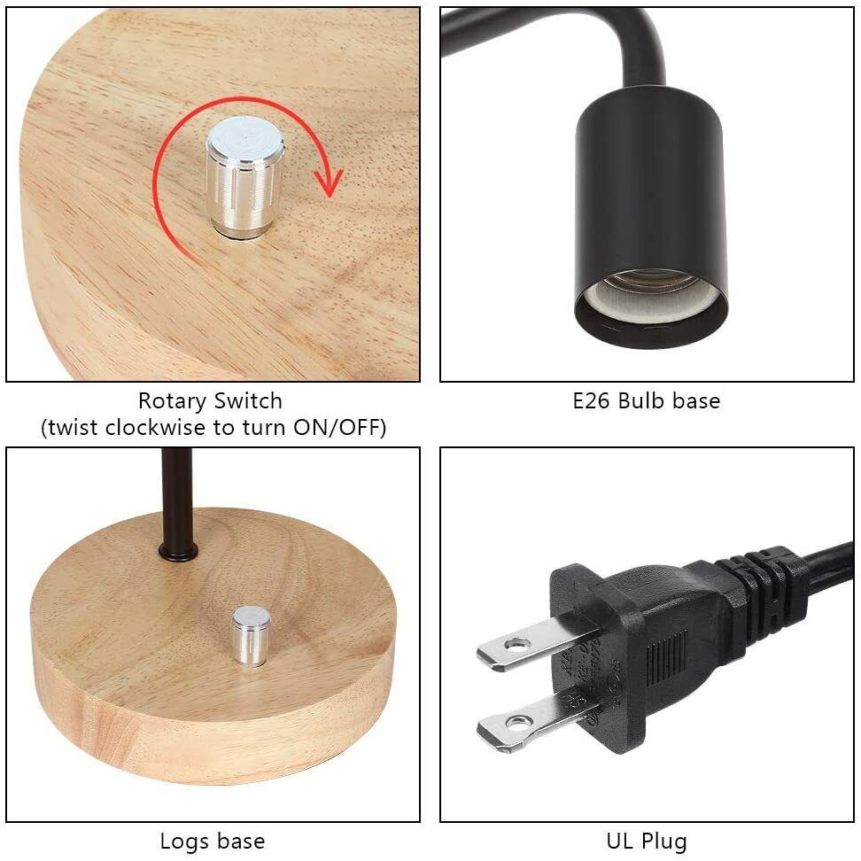 Set of 2 Edison Table Lamp, Industrial Bedside Lamps, Wood Desk Lamp Pairs for nightstand Dressers Coffee Table Study Desk in Bedroom, Guest Room